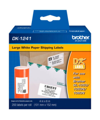 Cinta Brother DK-1241 Troquelada 4" X 6" Negro Sobre Blanco