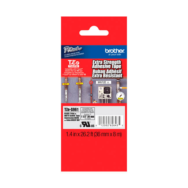 Otros: El negro en plata mate Brother TZeS961 con adhesivo extra fuerte para el P-Touch Etiquetadoras mide 1.4 x 26.2.