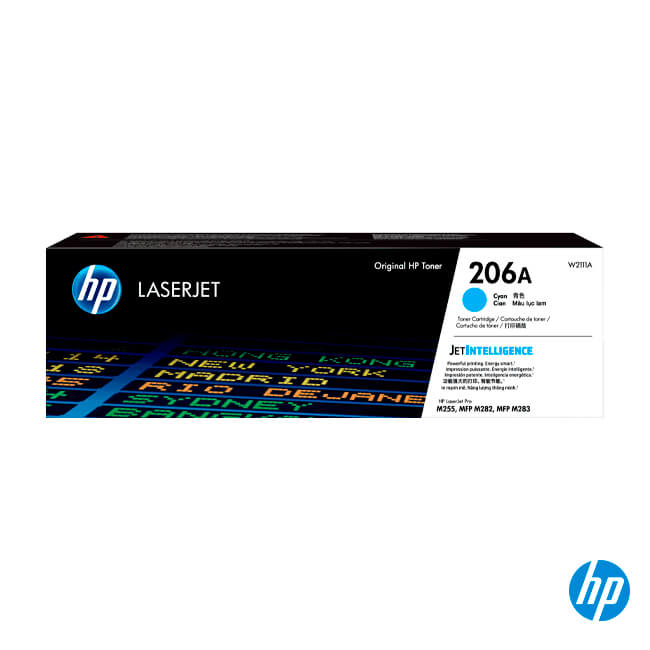 Toner HP W2111A (206A) L.J. M255 Cyan Compatibilidad: HP Color LJ Pro M255dw/ HP Color LJ Pro MFP M283fdw & M283cdw Rendimiento: 1,250 páginas.